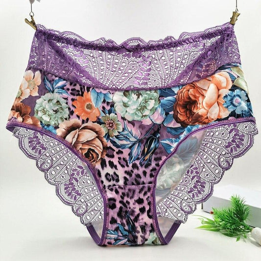 [3 PCS] Luxury Printed Plus Size Cutout Lace Panties
